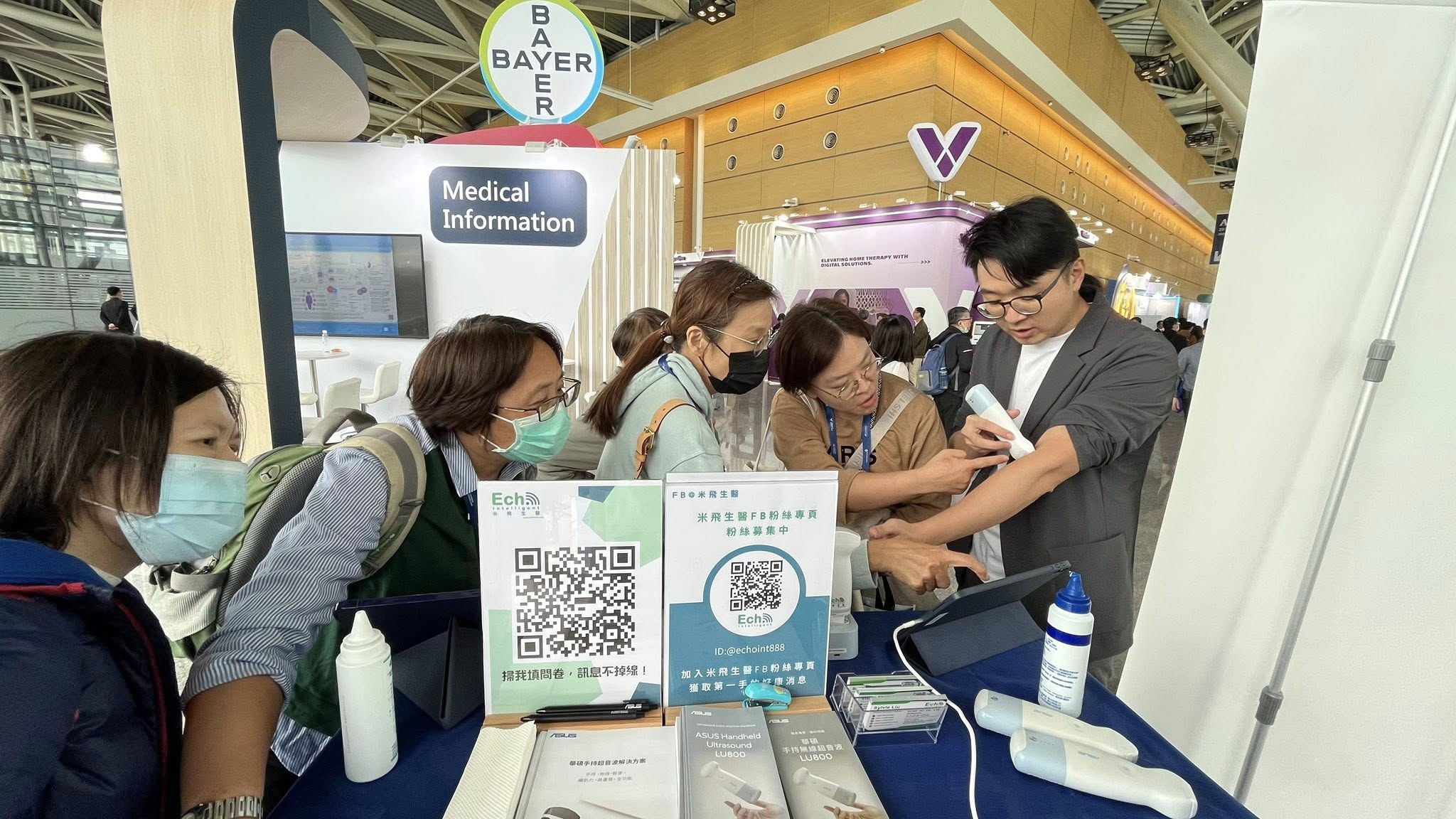 同步展示 #華碩手持無線超音波 與 #EchoVIU ,醫師對影像清晰度、操作流暢度及 AI 智能判讀功能展現高度興趣。